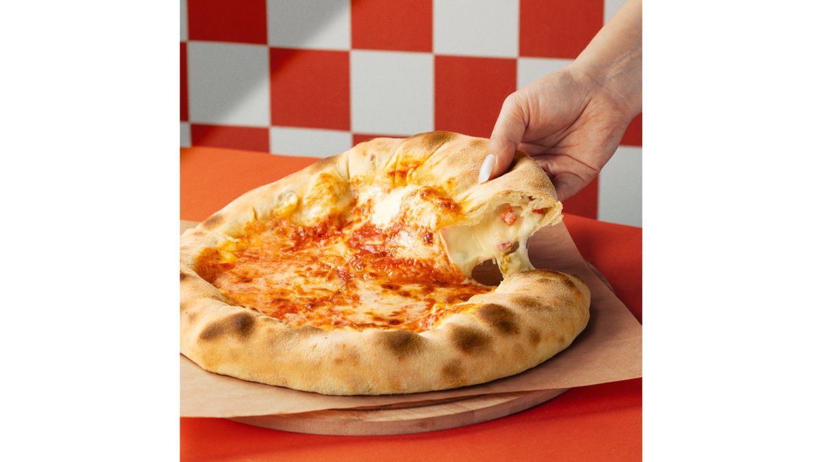 პიცის ნაპირები სავსეა ყველით, ტოპინგები:დამწიფებული მოცარელა, მარინარას სოუსი, ზეთისხილი, ცხარე პეპერონი, ქამასოკო.