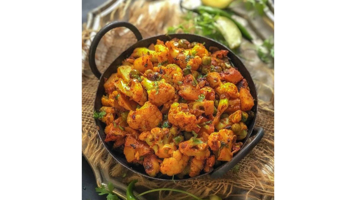 Mixed vegetables (potatoes, onions, cauliflower, spinach), Gram flour (besan), Rice flour, Ginger-garlic paste, Red chili powder, Turmeric, Salt, Oil (for frying), Cumin seeds
