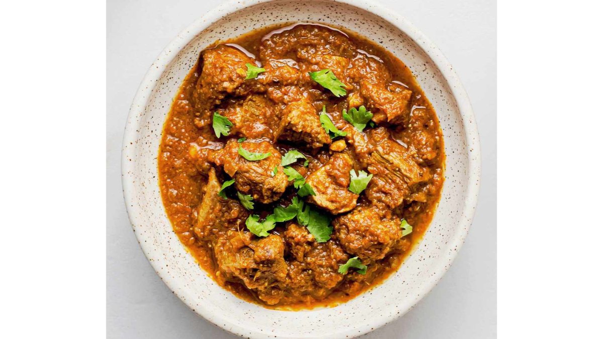 Mutton, Onions, Tomatoes, Ginger-garlic paste, Rogan Josh spices, Yogurt, Oil, Salt, Pepper, Coriander, Turmeric