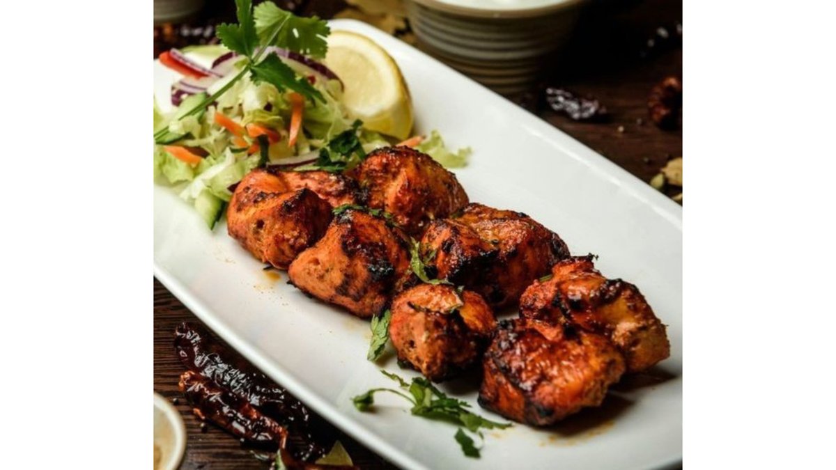 Chicken, Yogurt, Ginger-garlic paste, Tikka masala spices, Lemon juice, Oil, Salt, Red chili powder, Turmeric, Coriander