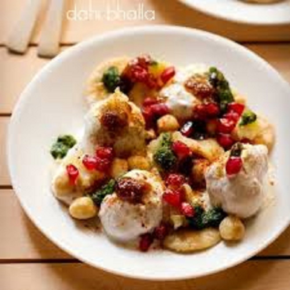 Urad Daal Balls, Curd, Pomegranate seed, Onion,