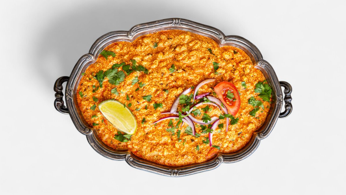 Paneer, Garlic, chilli, Corriander, Mint Curd Chutney, fried onion, some spices