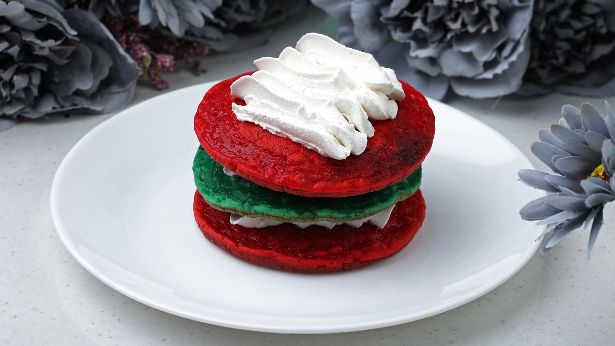 სამმაგი ფერადი ფენქეიქი ნაღების კრემით და სეზონური ხილით