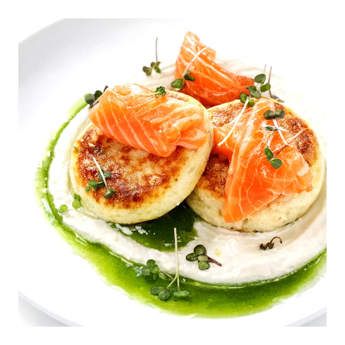 Syrniki with light salted salmon