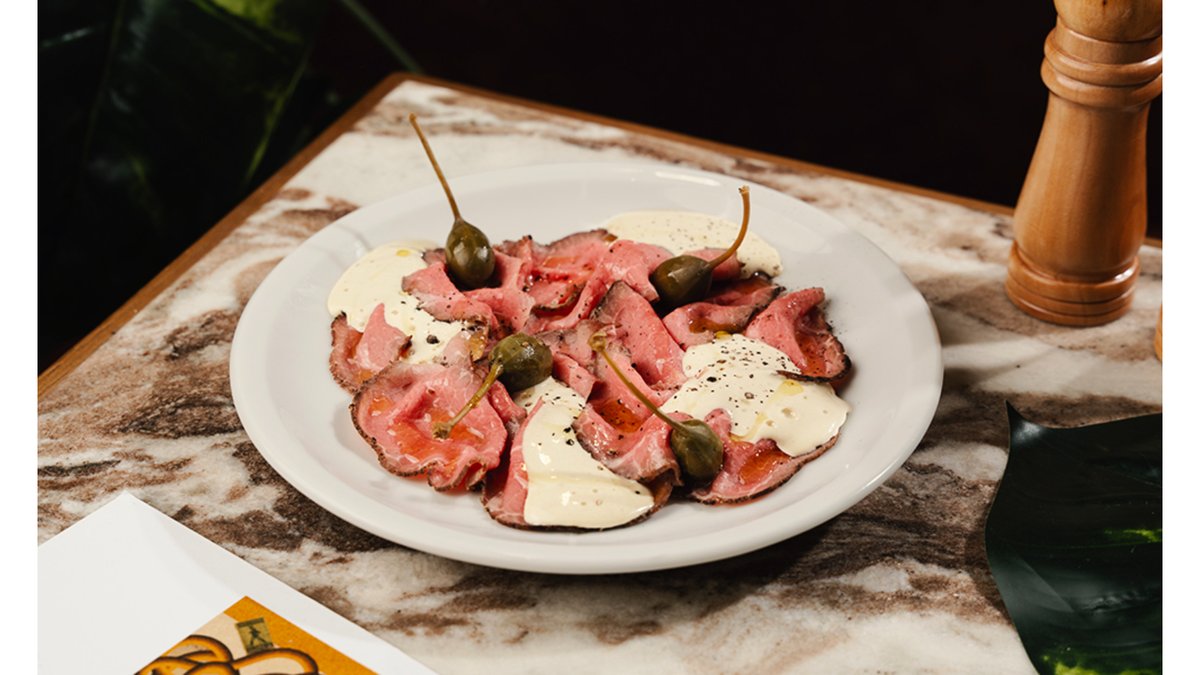 საქონლის რაგუ,ზეითუნის ზეთი,ნიორი, კვერცხი, მდოგვი, ლიმონი,ანჩოუსი, თინუსი გარნირი:ფოკაჩა ალერგენი:კვერცხი,მდოგვი,თევზი, გლუტენი,რძე,გოგრის თესლი, მზესუმზირა