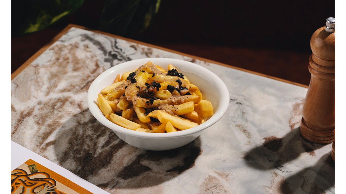 კარტოფილი ფრი, ტრუფელის პასტა, ზეითუნის ზეთი ექსტრა ვირჯინი, პარმეზანი ალერგენი:რძე