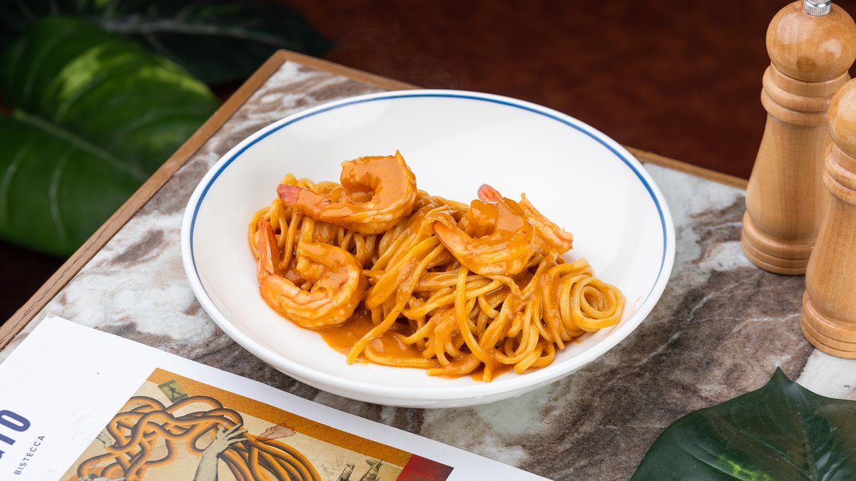 კრევეტი, პარმეზანი,თეთრი ხახვი,კარაქი, ნიახურის ღერო, ზეითუნის ზეთი, ნიორი, თეთრი ღვინო, ნაღები, ტომატ პასტა, ფქვილი, ტიმიანი, სტაფილო, ჰონდაში,კვერცხი,ფერადი ჩერი. ალერგენი:რძე,გლუტენი,კვერცხი, ნიახურის ღერო,კრევეტი,ნიორი