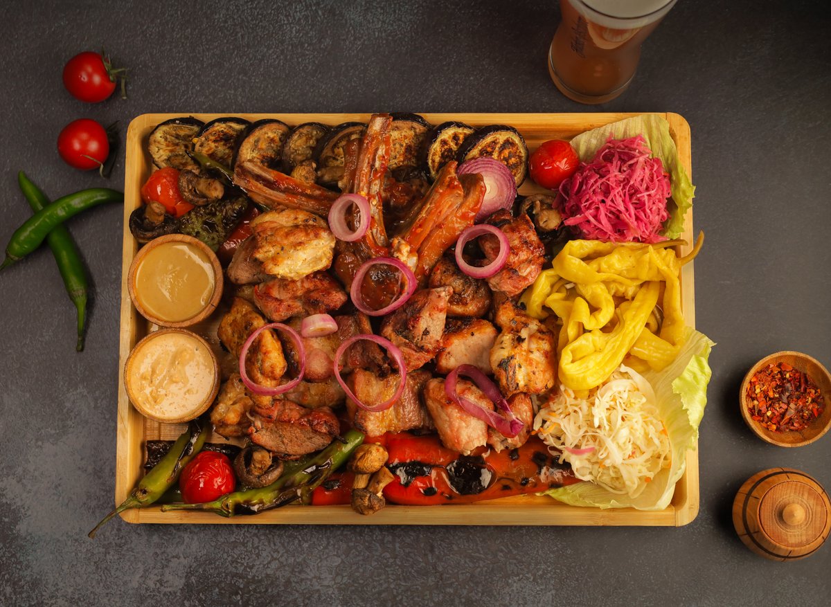 ღორის მწვადი; ღორის ნეკნი; ხბოს ნეკნი; ქათმის მწვადი; გრილზე შემწვარი ბოსტნეული
