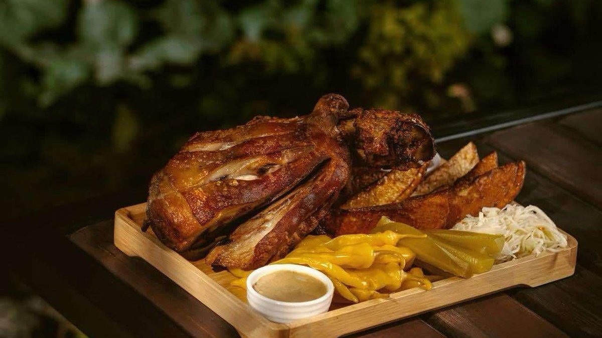 ღორის კანჭი, მექსიკური კარტოფილი, მწნილი, სოუსი