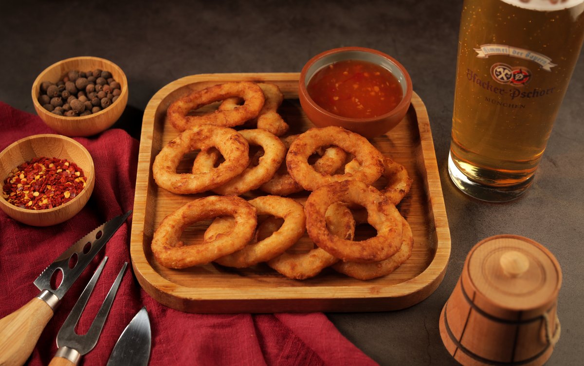 ხახვის რგოლები; სულგუნის ჩხირები; ნივრიანი პური; ლავაშის ჩიფსი, ტკბილ-ცხარე სოუსი