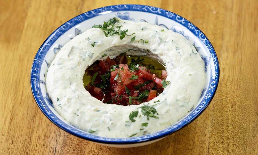 homos, herbs, spieces, onion, garlic