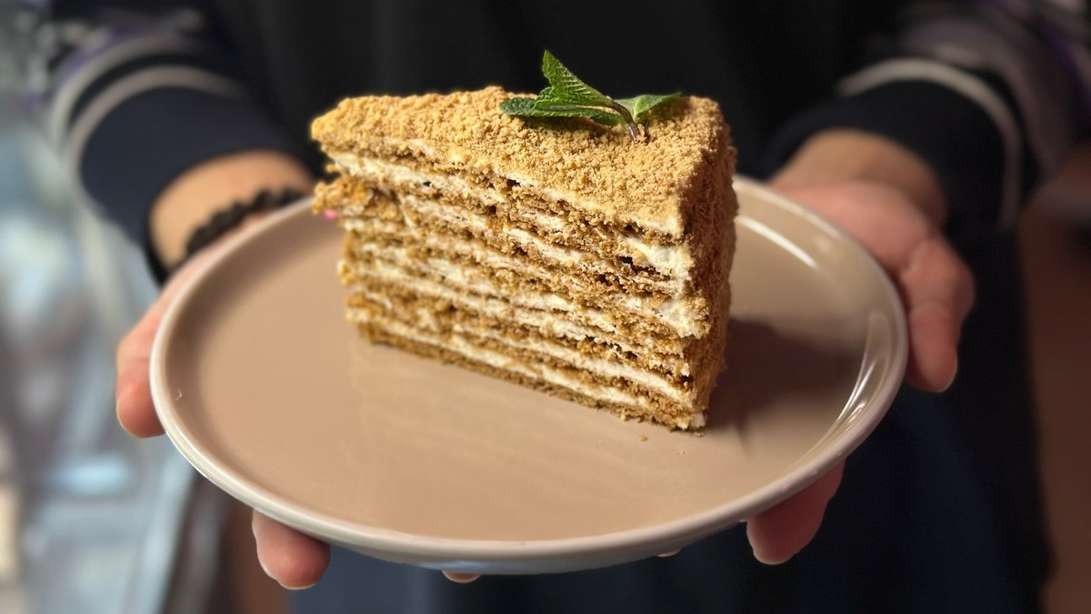 Butter, egg, Flour, Sugar, Sugar powder, Lemon fresh, Honey, Sour Cream, Cinnamon, Cream 33%, Labne