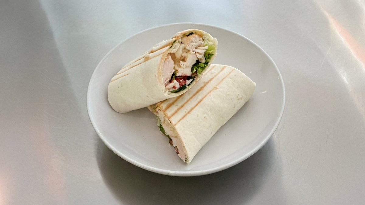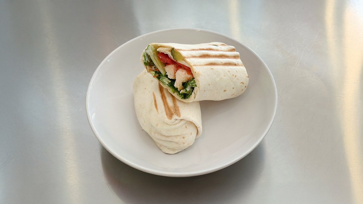 sous-vide chicken fillet, iceberg, Caesar sauce, tomatoes, parmesan, tortilla