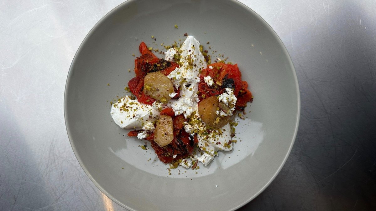 Roasted Bell Pepper w Labneh, Feta, Pistachio & Garlic Confit (kkal 556)
