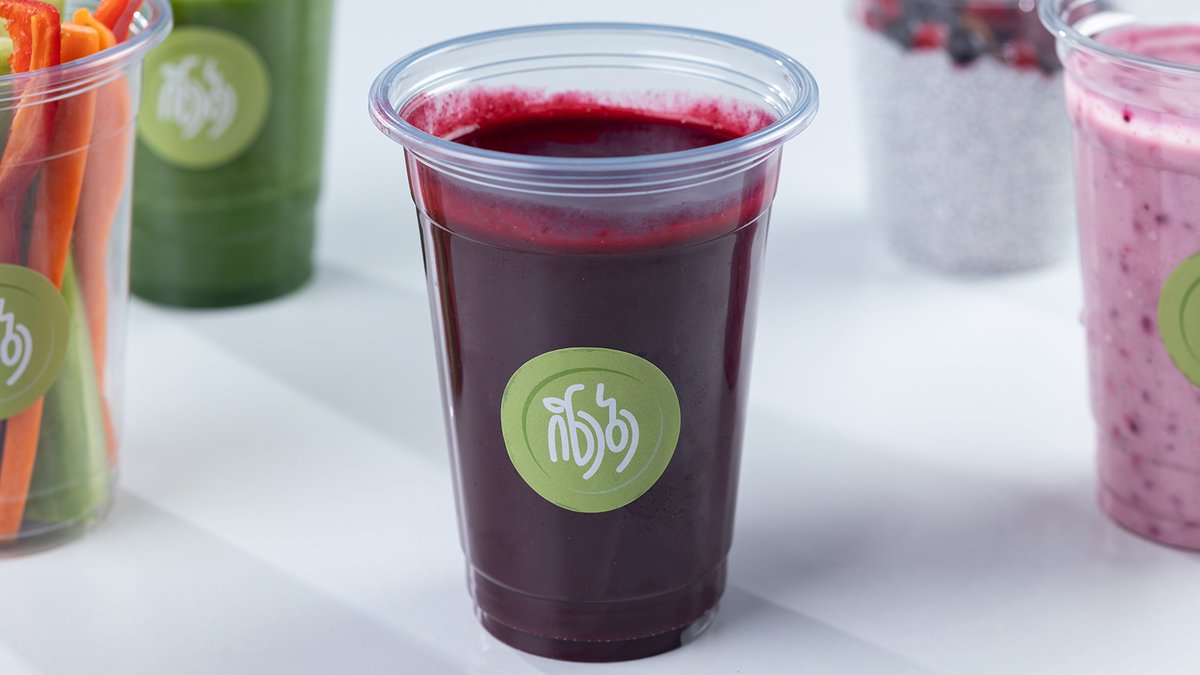 Beef patty, lavash, cherry tomatoes, arugula, berry sauce. Protein 31, fat 13, carbohydrates 26; 393 kcal.