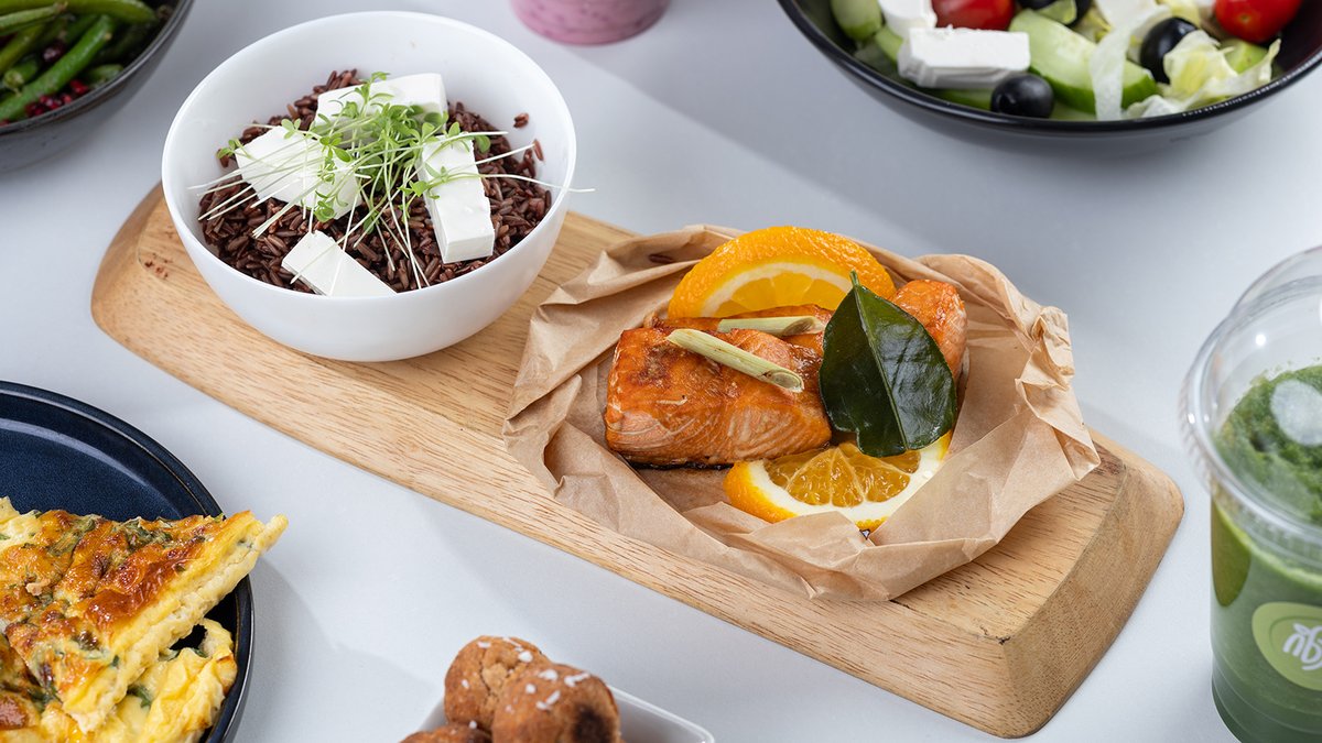 Farmed salmon, avocado, lemon. Keto Bread (Walnuts, Eggs, Butter) Protein 20, fat 38, carbohydrates 7.5; 438 kcal.