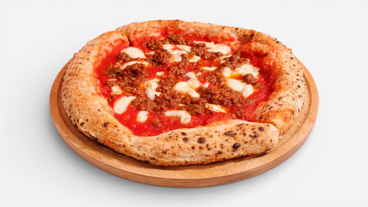 ცომი, ტომატი, მოცარელა, პარმეზანი, საქონლის ხორცი, ღორის ხორცი, ბაზელიკი