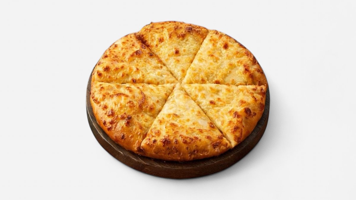 ცომი, პომიდორი, მოცარელა, პარმეზანი, პეპერონი.