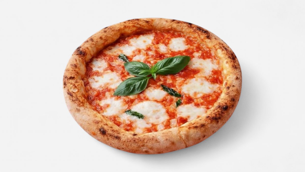 ცომი (ფქვილი, მარილი, საფუარი, ზეითუნის ზეთი), პომიდორი, მოცარელა, პარმეზანი, ახალი რეჰანი.