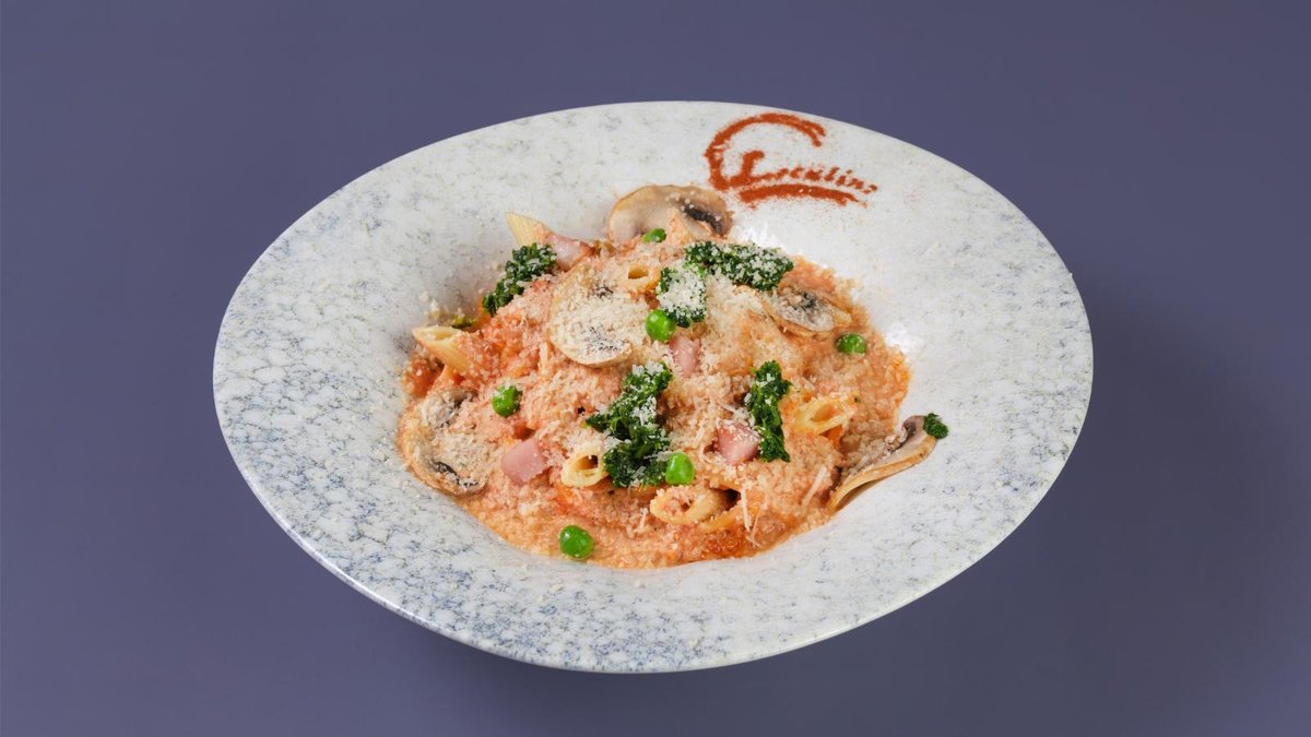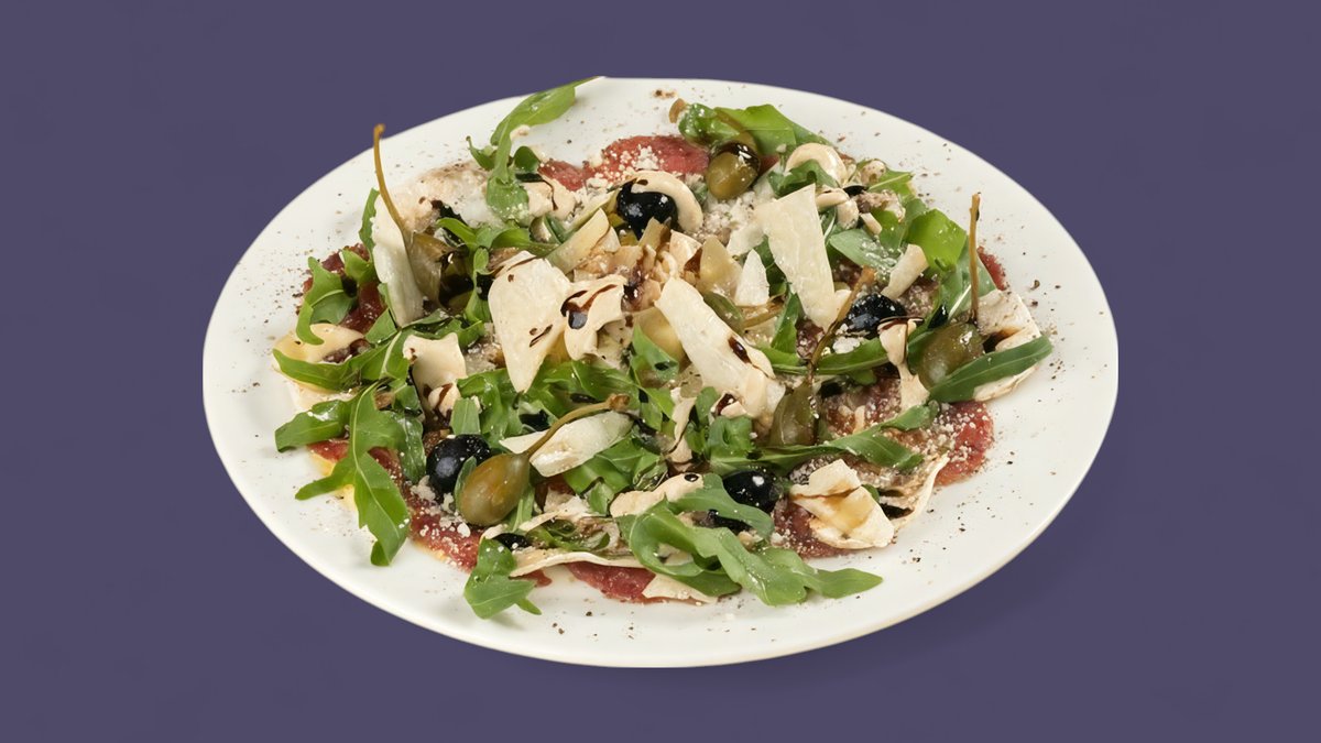 პომიდვრის სოუსი, ყველი, პარმა ლორი, რუკოლა, პარმეზანი, ზეითუნის ზეთი.