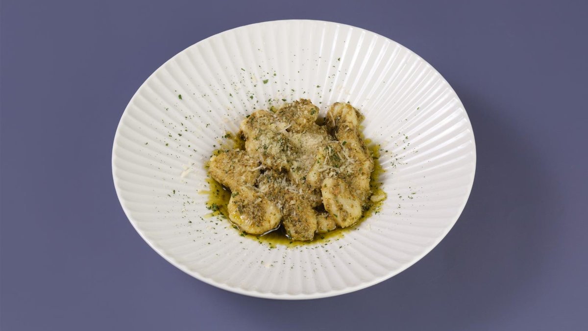 ღუმელში გამომცხვარი კანელონი ისპანახით და ოთხი სახეობის ყველის სოუსით.