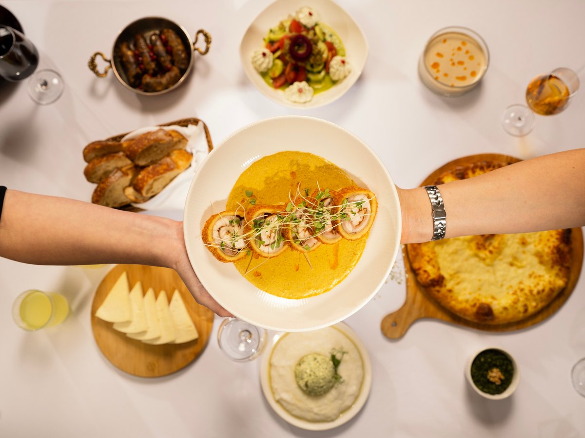სულგუნი, მაწონი,პიტნა, მწვანილი, მეგრული მწვანე აჯიკა, პომიდორი ჩერი, სალათის ფურცელი