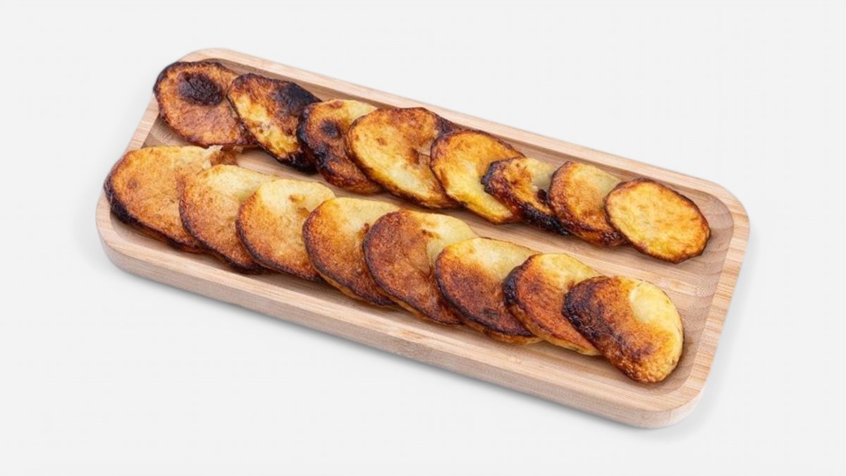 კარტოფილი დაჭრილი სქლათ და მაყალზე შემწვარი