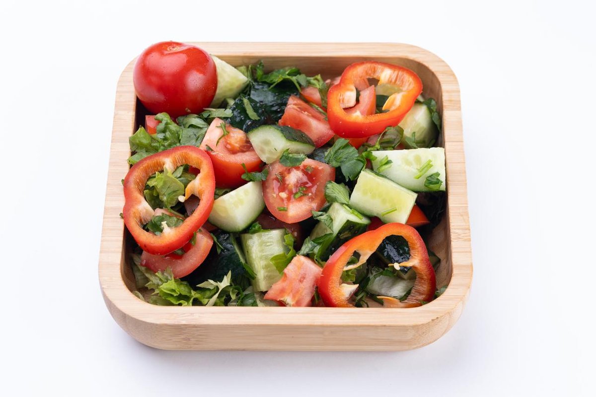 სალატის ფურცელი,კიტრი,პომიდორი,ბულგარული,ხახვი,ლიმნის წვენი,ზეითუნის ზეთი
