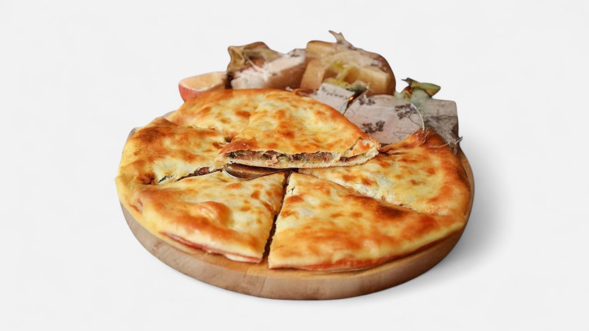 Flour, Mozzarella, Suluguni, Cheddar Cheese, Gauda Cheese, Parmesan Cheese, Oil, Tomato, Yeast, Sugar, Oregano, Salt
