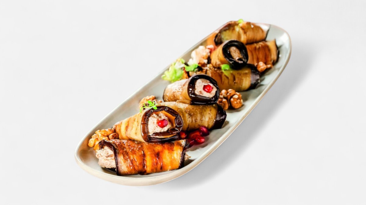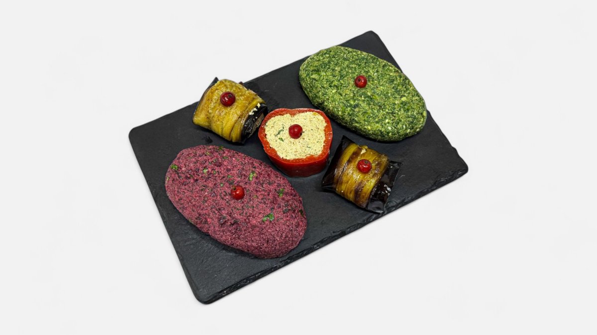 Eggplant, Oil, Lettuce, Coriander, Parsley, Greek Nuts, Spices, Garlic, Eggplant, Bell Pepper, White Pkhali, Red Pkhali, Onion, Foreign Seasoning, Black Pepper