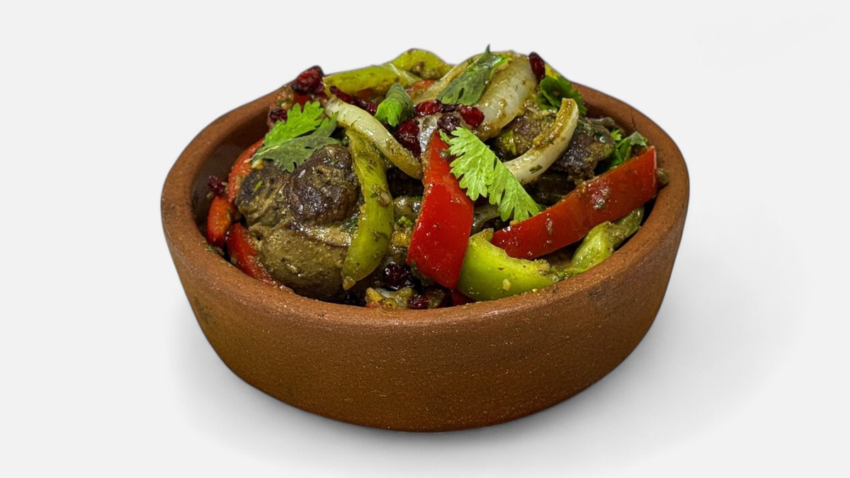 Chicken Heart And Liver, Onion, Garlic, Bell Pepper Red, Salt, Black Pepper, Oil, Dried Red Pepper, Savory, Parsley, Coriander