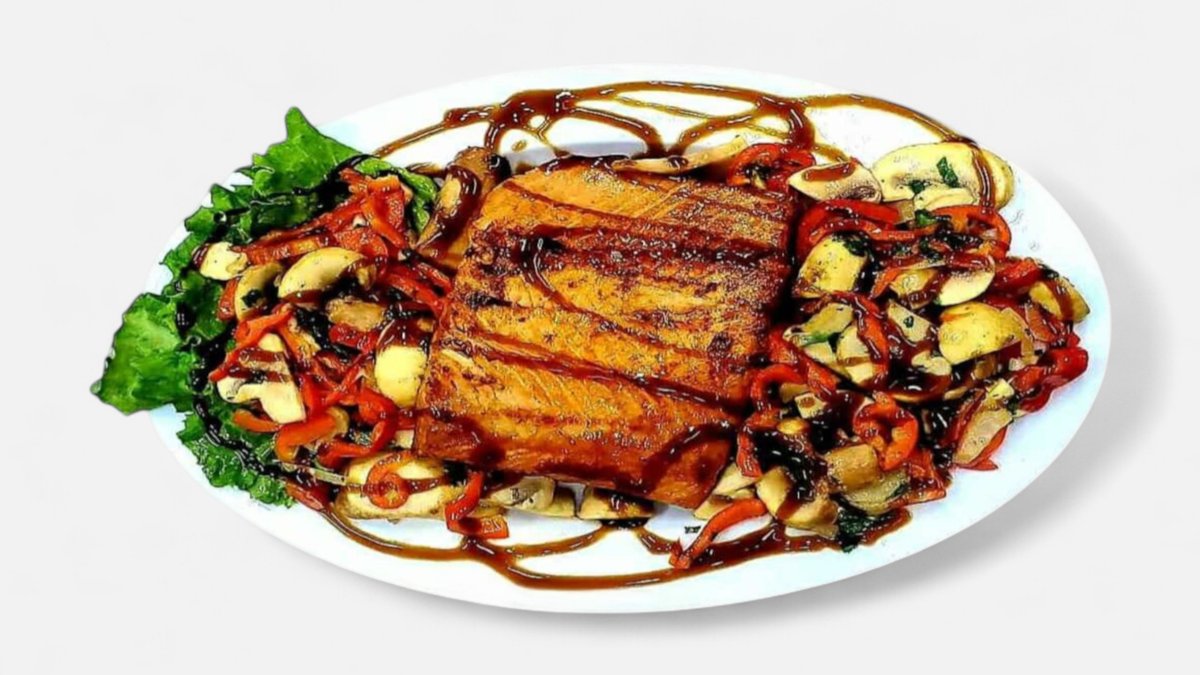 Salmon Fillet Fried, Oil, Salt, Fish Sauce, Liquid Bolus, Red Bulgarian, Champignons