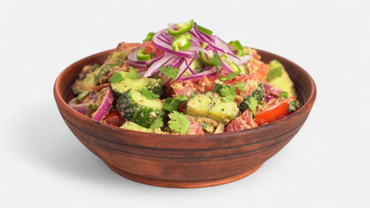 Tomato, Cucumber, Onion, Walnuts, Green Pepper, Coriander, Basil Seasoned, Salt
