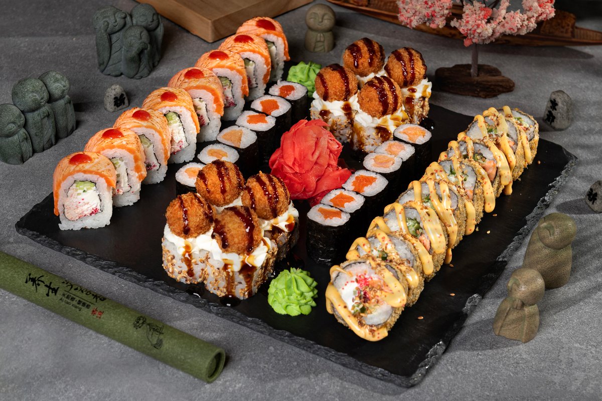 გამომცხვარი ორაგულის როლი - 8 ნაჭერი ცხარე დელუქსი - 8 ნაჭერი ცხარე ფილადელფია კრაბით - 8 ნაჭერი ორაგულის მაკი - 6 ნაჭერი შებოლილი ორაგულის მაკი - 6 ნაჭერი