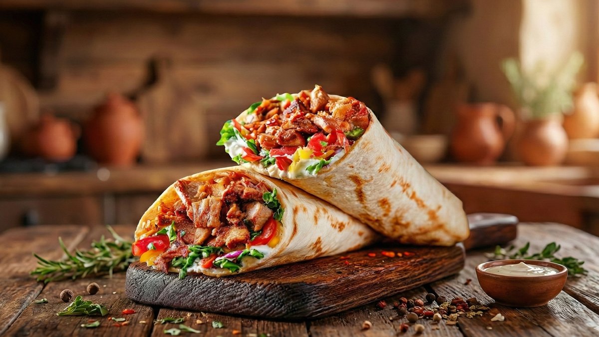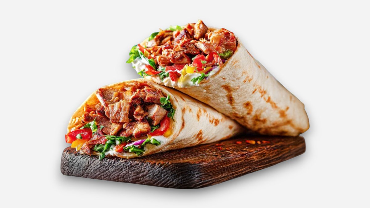 Chicken meat, aicberg, red cabige,peper, ketchup, mayo,