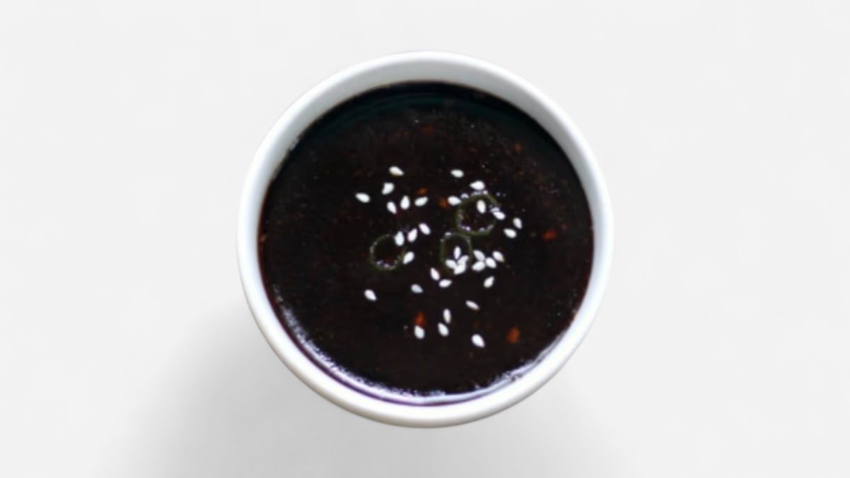 მისოს ბულიონი, რამენის ატრია, დამარინადებული კვერცხი, სოკო ფუნგუსი, სოკო შიტაკი, დამარინადებული ტოფუ, მწვანე ხახვი, სეზამის მარცვლები.