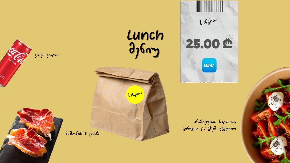 2 ტაპა ხამონით, პომიდვრის სალათი ფინიკით და კრემ ყველით, კოკა-კოლა კლასიკი ან ზერო