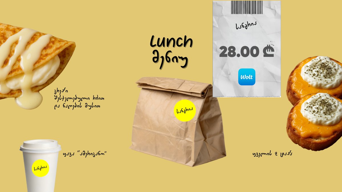 2 ტაპა ყველით, კრეპი შესქელებული რძით და ნაღების მუსით, ყავა "ამერიკანო"