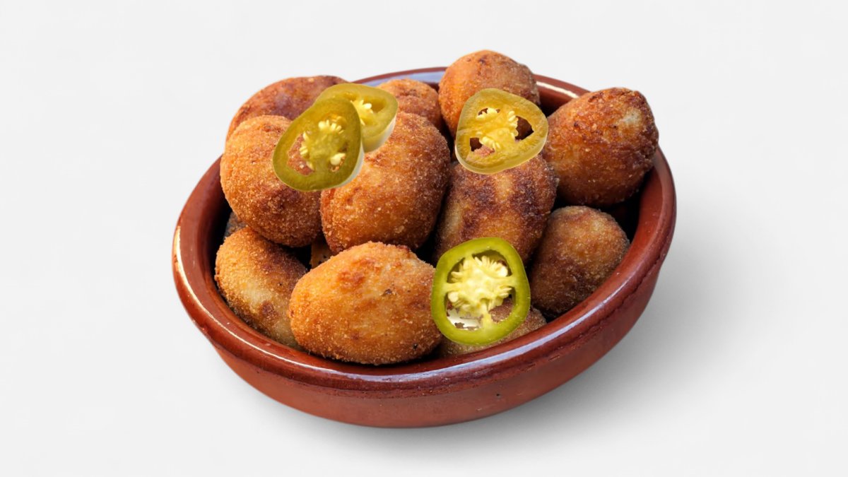 უგემრიელესი კროკეტები, კრემ-ყველით, ქათმის ხორცით და წვნიანი შიგთავსით. 12 ცალი. ტკბილ-ცხარე სოუსით