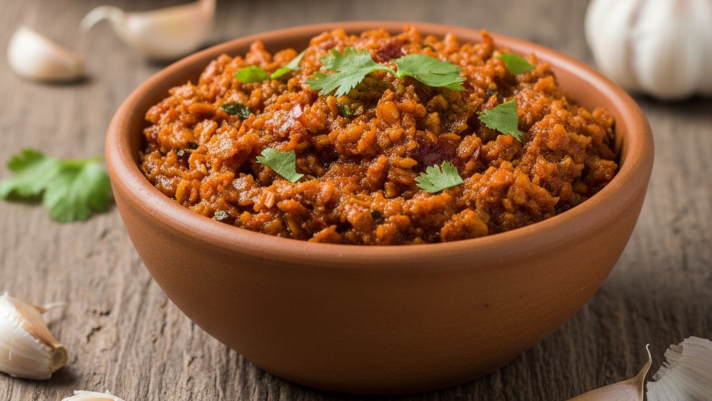 thick hot spicy chutney, made with garlic and red chilies.