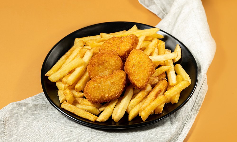 ქათმის ნაგეცი და კარტოფილი ფრი შემწვარი