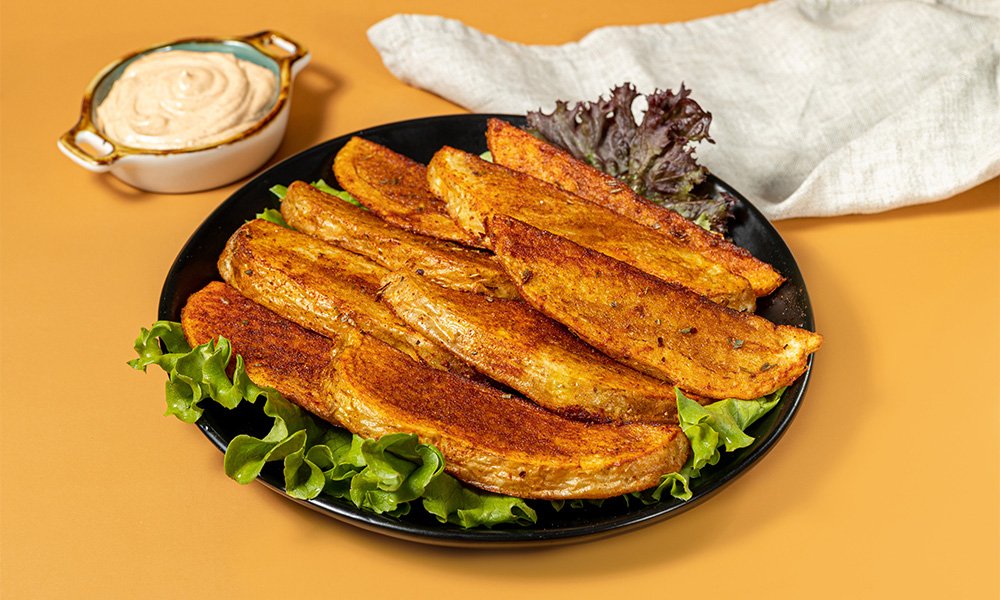 კარტოფილი შემწვარი, მექსიკურად, ტარ-ტარ სოუსით.