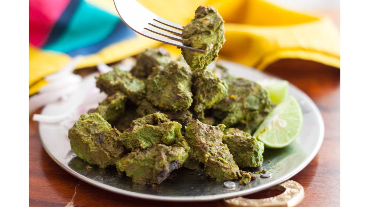 Chicken marinated in mint and coriander with spices, grilled for a flavorful experience