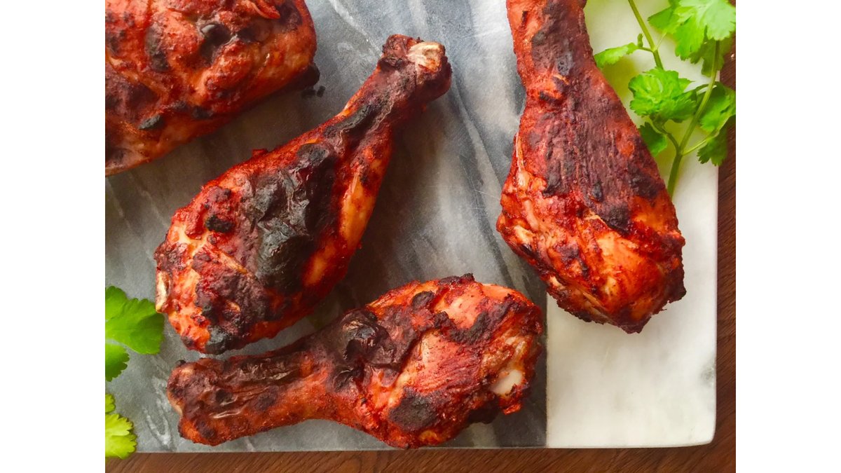 Traditional tandoori chicken marinated in spices and yogurt, cooked in a clay oven