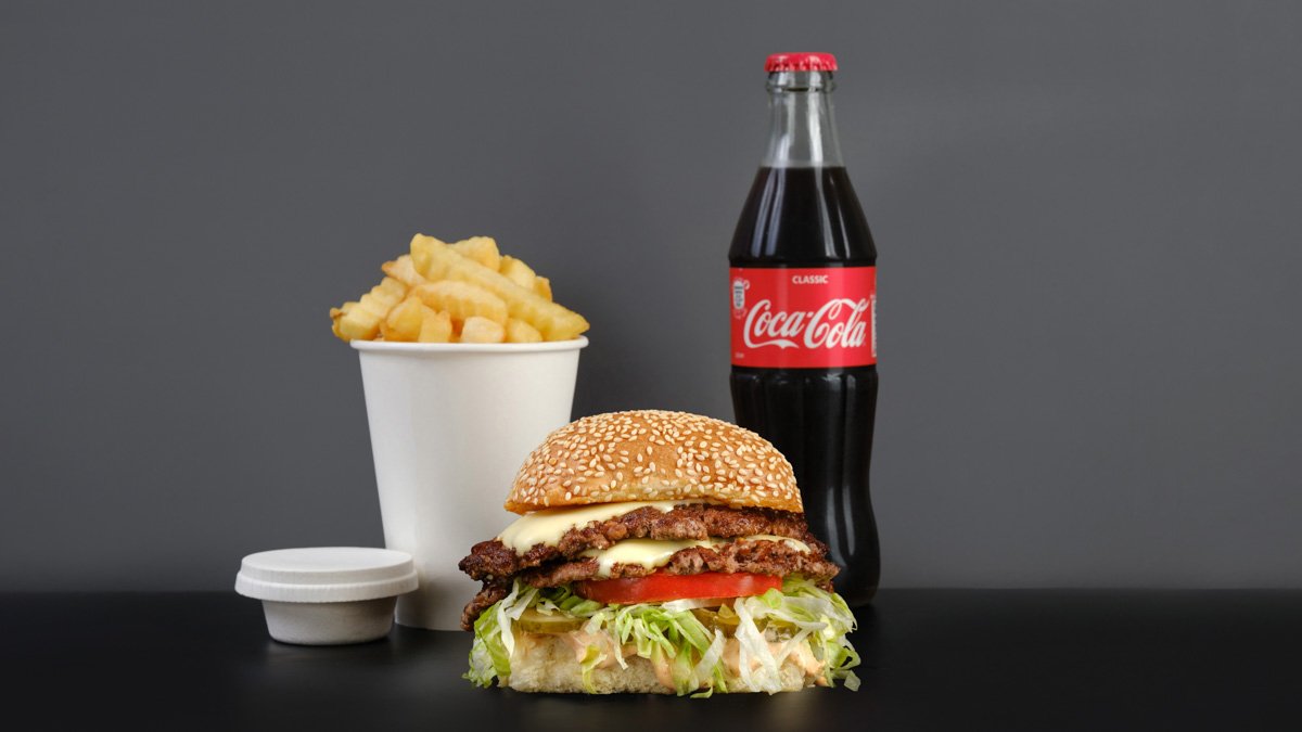 კლასიკ ბურგერი, კარტოფილი ფრი, სასურველი სოუსი, სასმელი