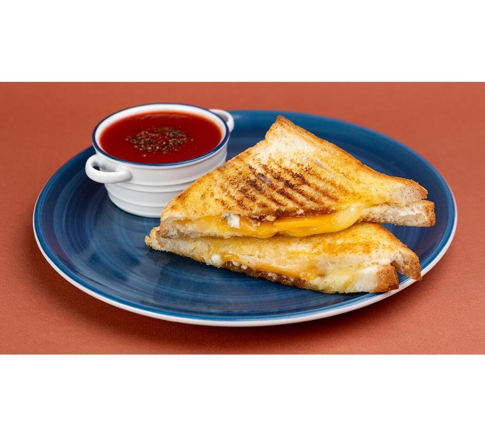 ტოსტის პური, ლეღვის ჯემი, ჩედარი, შვეიცარული და ლურჯი ყველი, ნაღების კარაქი