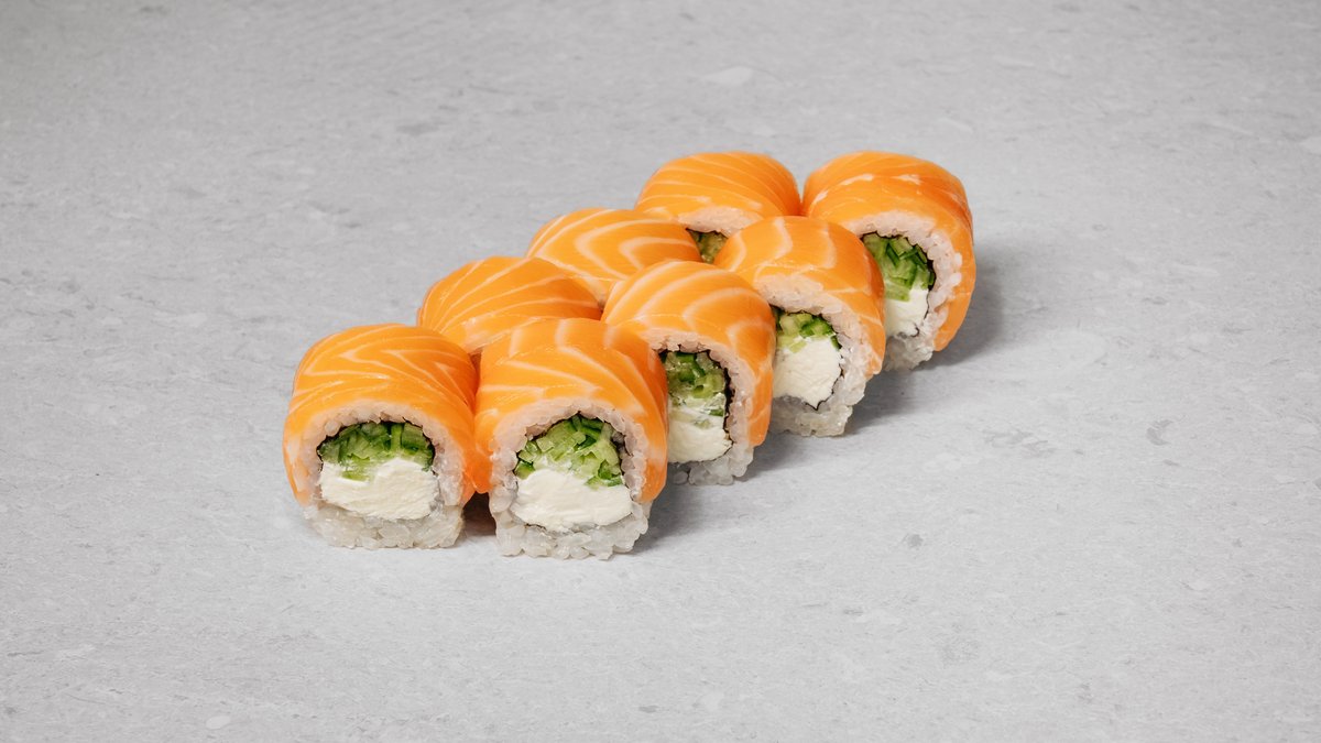 Rice, nori, cream cheese, cucumber, salmon