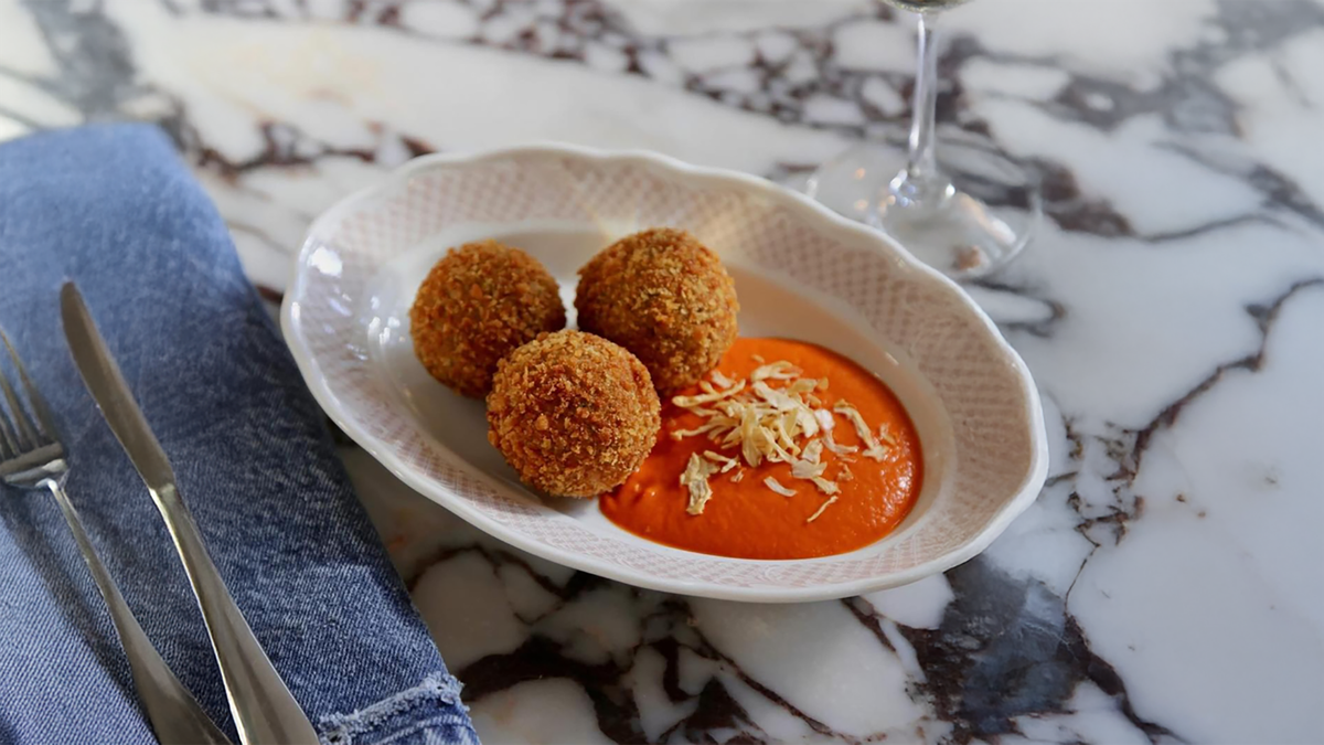 გოჭის კროკეტი მაწვნის და აჯიკის სოუსით
