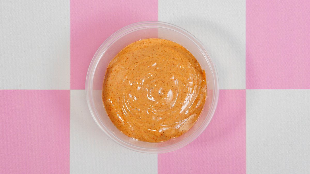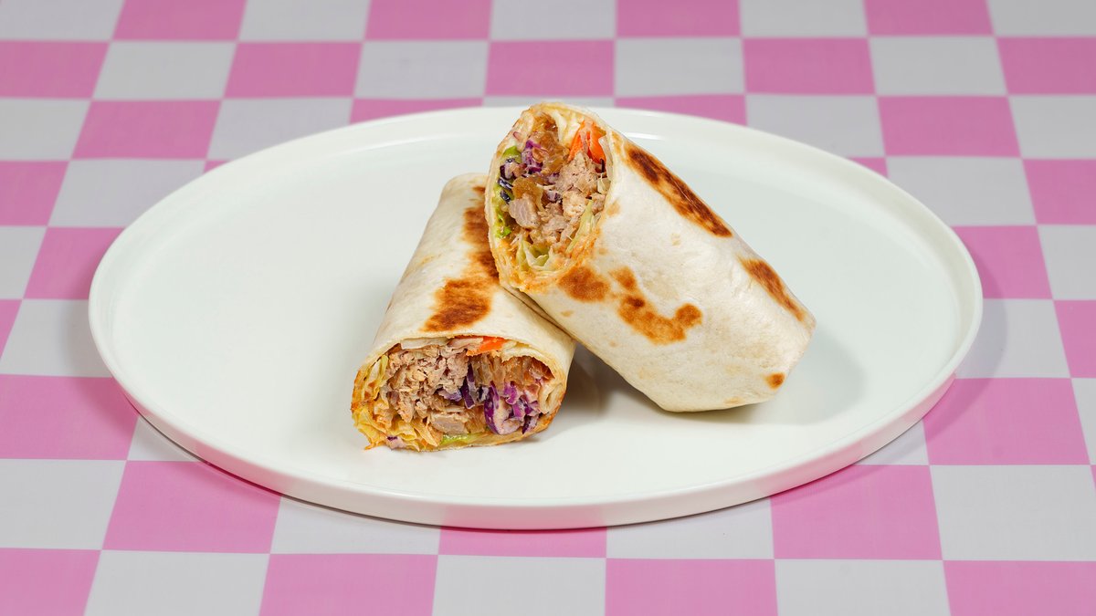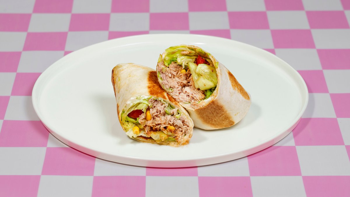 პანირებული ქათამი , პომიდორი, დამარინადებული კიტრი , გაუდა , წითელი კომბოსტო , სრირაჩა მაიონეზი , ტაჰინი იოგურტის სოუსი