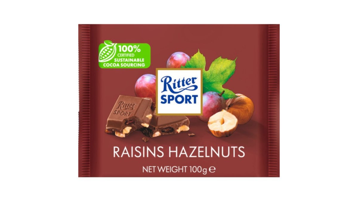 შოკოლადი /რიტერ სპორტი/ რძიანი, ქიშმიშით და თხილით 022004 /12*100 გ
